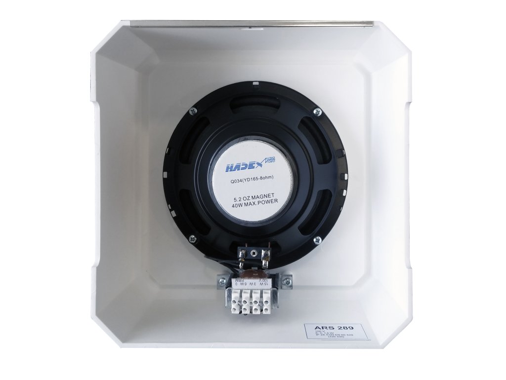 Reproskrinka na stenu. Je vyrobená z plastu bielej farby. Na prednej strane je čierny molitan. Príkon: 6, 3, 1,5 VA, napätie: 100 V, frekv.rozsah: 200-10000 Hz, citlivosť: 90 dB, rozmery: 24 x 24 x 10 cm, hmotnosť: 1,5 kg.Dodatočné parametre