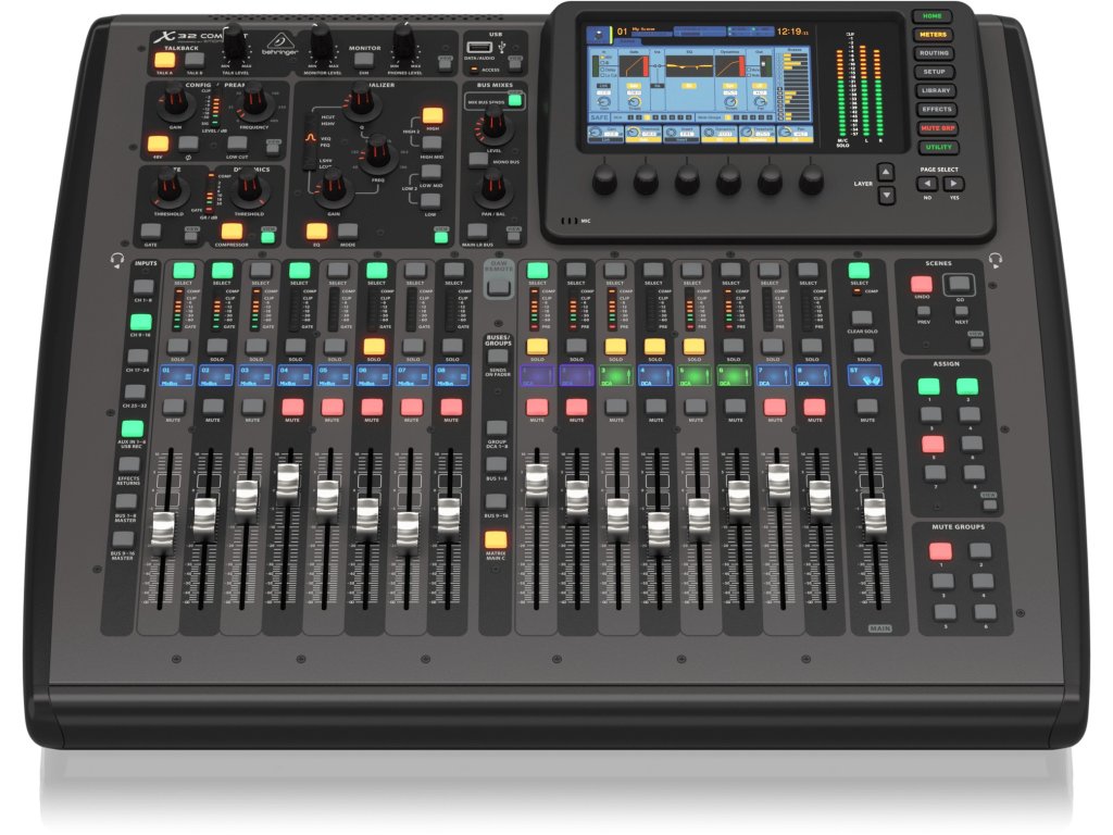 Behringer X-32 Compact je digitálny mixážny pult, ktorý ponúka celkom 16 predzosilňovačov MIDAS, 40 vstupov, 25 zberníc, 17 motorizovaných faderov, LCD panel s informáciami pre každý kanál, zvukovú kartu 32/32 a diaľkové ovládanie cez iPad/iPhone.