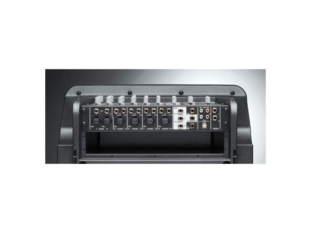 - Vstavaný mixážny pult so 6x XLR mikrofónovými vstupmi s fantómovým napájaním, 2x mono vstupmi a 4x stereo vstupnými kanálmi, 3-pásmový ekvalizér, 99 voliteľných digitálnych efektov s ovládačmi pre odoslanie a návrat efektov