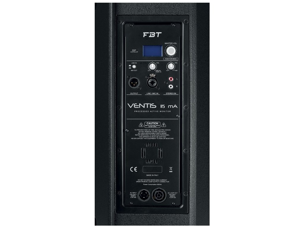 FBT VENTIS 115 MA ponúka výkonné a kompaktné riešenie tam, kde je potrebné dodať zvuk pre pevnú inštaláciu alebo prenosný zvuk za vynikajúcu cenu. VENTIS ponúka 6 predvolieb pre širokú škálu použití, z ktorých každá bola vytvorená inžiniermi FBT. Predvoľby využívajúce výkonný DSP zaisťujú spoľahlivosť a zároveň eliminujú skreslenie. Vďaka custom prevodníkom B&C sú schopné dosiahnuť 133 dB SPL. Reprobox je vyrobený z 15 mm brezovej preglejky a môžu sa tiež použiť na pevnú inštaláciu a FOH vďaka 35 mm zásuvke na tyč a vložke pre voliteľnú montážnu konzolu.