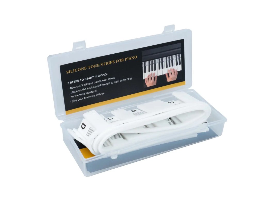Silikónový pás HETSP88 Silitone je skvelou pomôckou na piáno pre začiatočníkov aj pokročilých. Tri pásy s tónmi a notami presne zapadajú na klaviatúru (88 kláves) a pomáhajú pri orientácii na klávesoch. Tento šikovný spôsob ako lepšie cvičiť na piáno, nijako nezasahuje do použitia klávesov, nemusí sa lepiť ani zložito upevňovať.