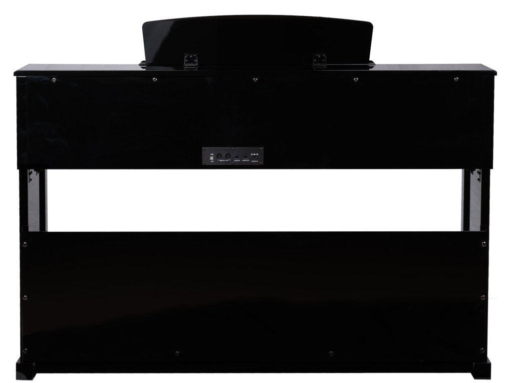 Vstavané reproduktory 2x 20W a 128 hlasá polyfónia zaisťujú plný a presvedčivý zvuk, či už pri hre potichu doma alebo pred publikom v menšom priestore. Vďaka špeciálnym priezorom nad klaviatúrou je zvuk priestorovejší. Slúchadlový výstup (jack 3,5 mm) umožňuje večerný tréning bez rušenia okolia. Tri pedále – Soft, Sostenuto a Sustain – fungujú rovnako ako pri akustickom klavíri a umožňujú detailnú prácu s výrazom. Bluetooth (MIDI & Audio) slúži na pripojenie k výukovým aplikáciám alebo prehrávanie obľúbených skladieb. Konektivita ďalej zahŕňa USB to Hosť, MIDI In/Out a Audio In/Out. Bytelná skriňa s lesklým čiernym povrchom pripomína tradičné akustické piana a zároveň pôsobí ako elegantný kus nábytku.