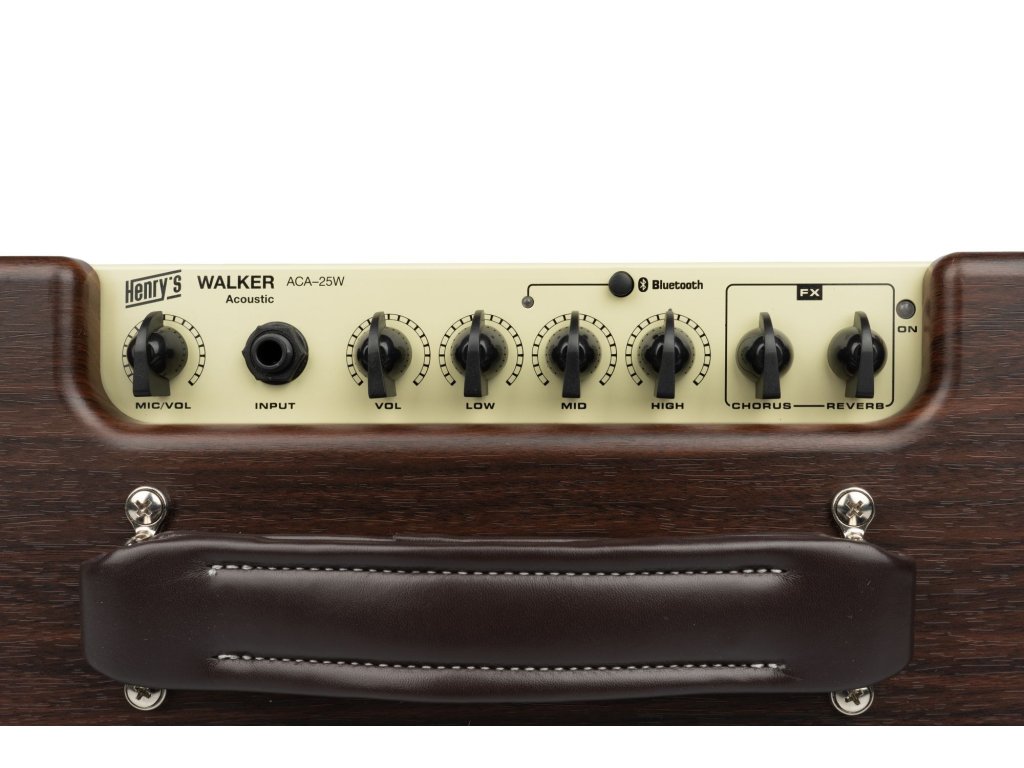 Akustický kombinovaný zosilňovač Henry's Walker ACA-25W – Prenosný 25W akustický zosilňovač v štýlovom tmavom mahagónovom prevedení, ideálny pre gitaristov a vokalistov na cestách. Obsahuje dva nezávislé kanály pre gitaru a mikrofón so vstavanými efektmi chorus a reverb, pripojenie Bluetooth, vysokokvalitný 6,5" reproduktor a výdrž batérie až 5 hodín. Kompaktný, ľahký a všestranný, je ideálny na busking, cvičenie a malé vystúpenia. Objednajte si ho teraz a pozdvihnite svoj hudobný zážitok s vynikajúcim zvukom a pohodlím.