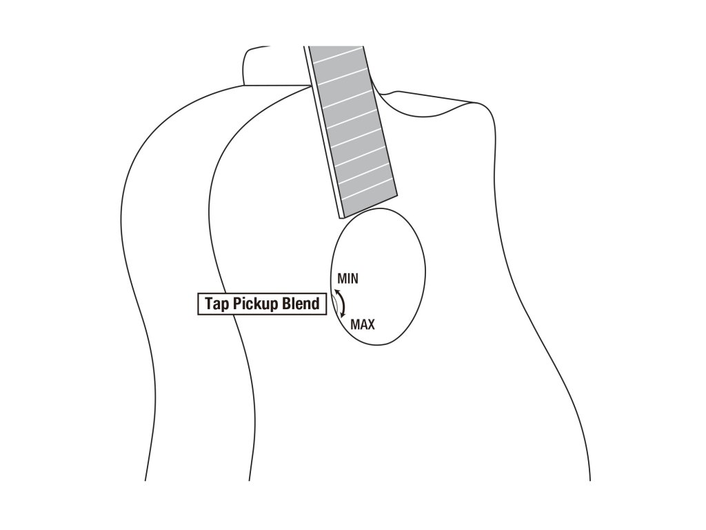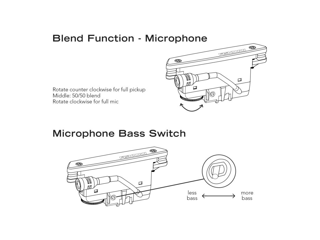 Ovládacie prvky, prepínač snímača: Ovládanie mixu mikrofónu/magnetu, prepínač predĺženia/vypnutia basov mikrofónu, ovládanie mixu snímača Tap