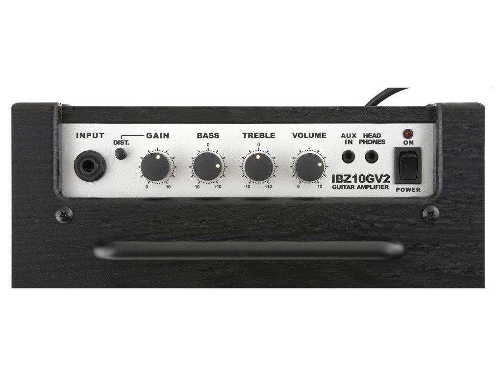 Ovládacie prvky: Prepínač zapnutia/vypnutia skreslenia, Gain, Basy, Výšky, Hlasitosť