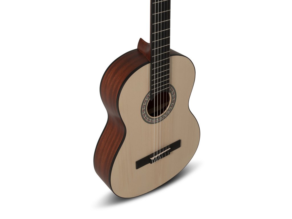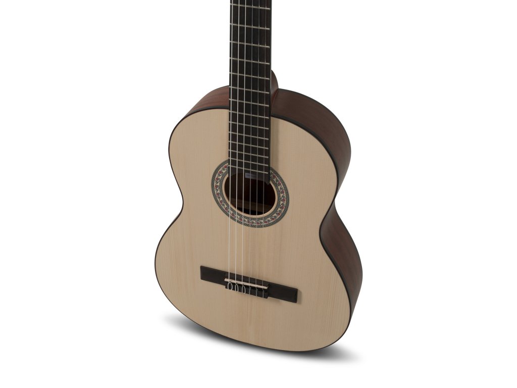 7/8 veľkosť, pre vek od cca.13 rokov620 mm menzúra, 48 mm šírka sedla, 950 mm celková dĺžkaMasívna, 4-dielna doska-smrek, pravá,drevená mozaika/rezonančný otvor-rozeta