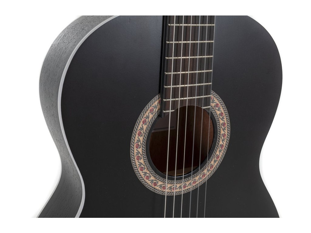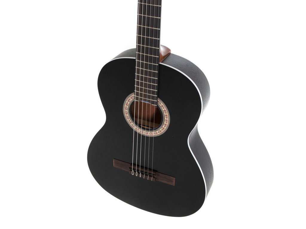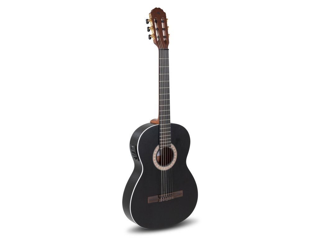 Gitara Principio Serie P 4/4 čierna kombinuje tradičný klasický zvuk s možnosťou elektronického zosilnenia. Je ideálna pre študentov aj pokročilých hráčov, ktorí chcú cvičiť doma, hrať koncerty alebo nahrávať. Horná doska je z masívneho smreku, spodná doska a luby z mahagónu Sapelli, krk z okoumé s karbónovou výstužou a hmatník s kobylkou z ovangkolu. Matná povrchová úprava s otvorenými pórmi podporuje rezonanciu dreva a teplý, vyvážený tón.