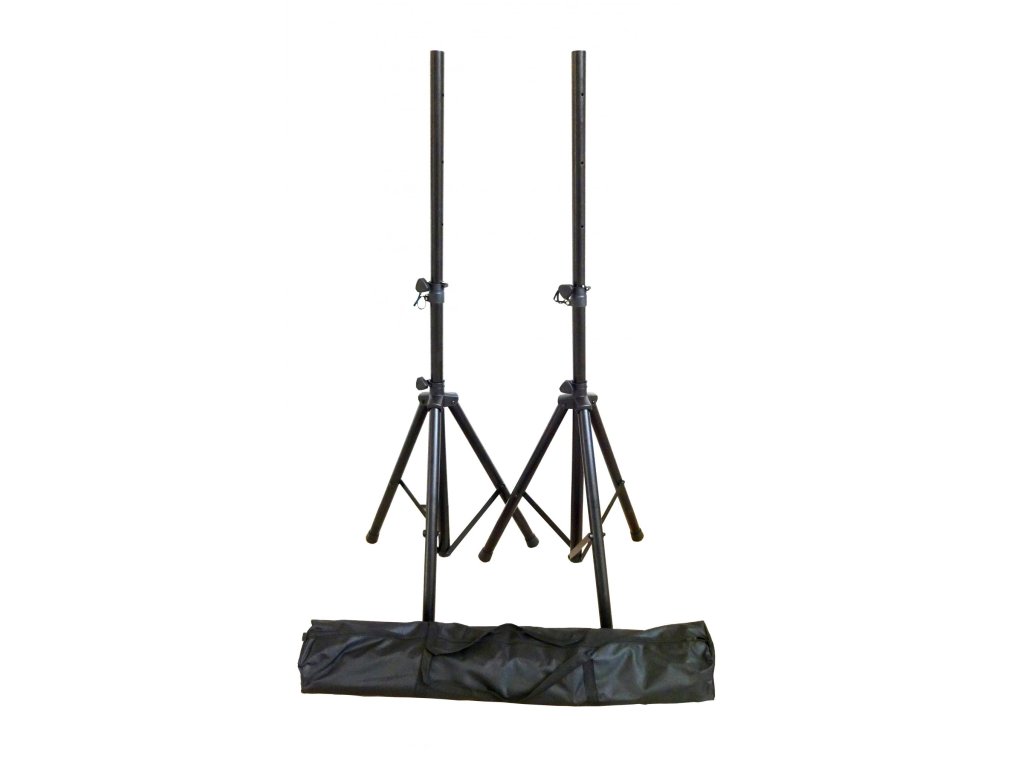 Set dvoch kvalitných masívnych kovových reproduktorových stojanov balených v praktickom prepravnom obale. Stojany sú vyrobené z oceľových trubiek s povrchovou úpravou čierna farba.