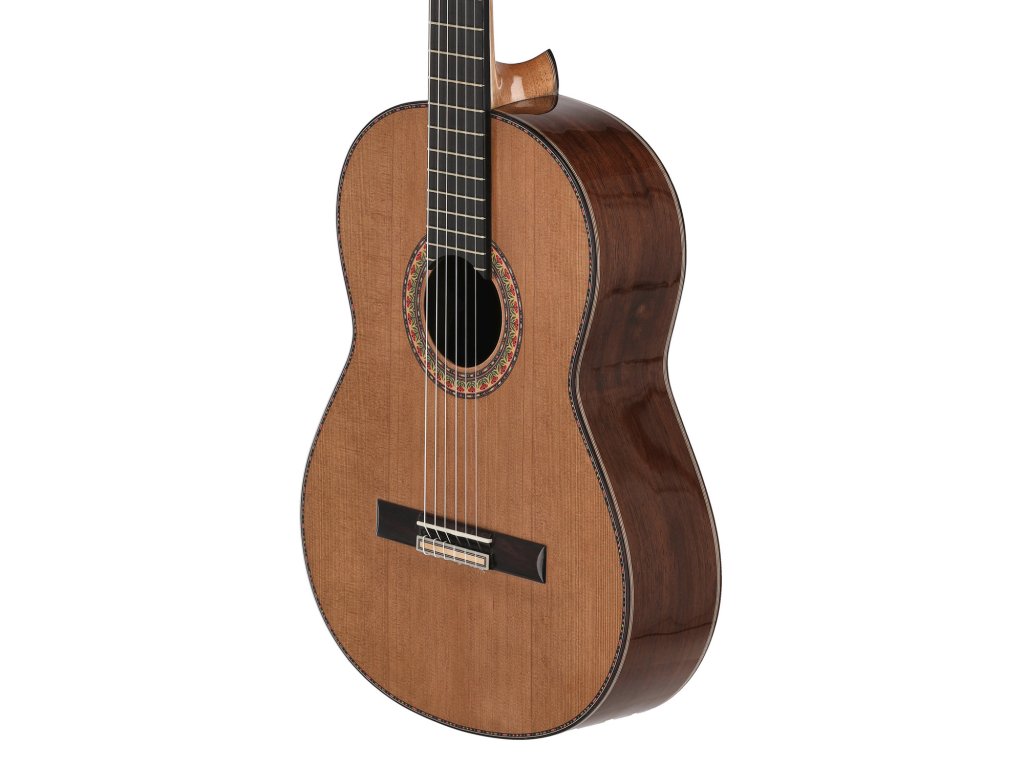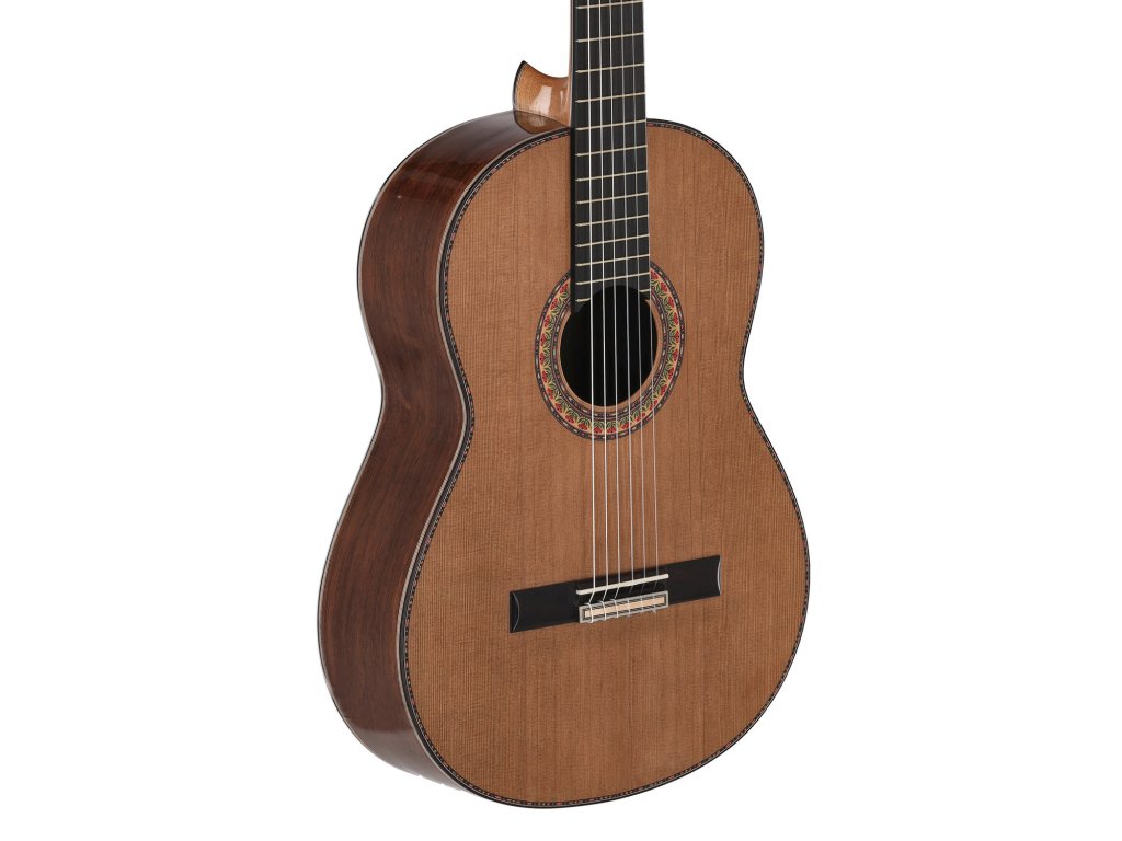Manuel Rodríguez JUNIOR - majstrovská gitaraExkl. Signature model, kompletná ručná výroba z driev staroba 25 rokov, kvylitné výberové drevá. Model ,,MR Jr." má spodnú dosku a luby z masívneho Madagascar palisandra a podľa voľby hornú masívnu dosku z kanadského reveného cédra, alebo nemeckého smreku. íguez" - Esquivias, Toledo.