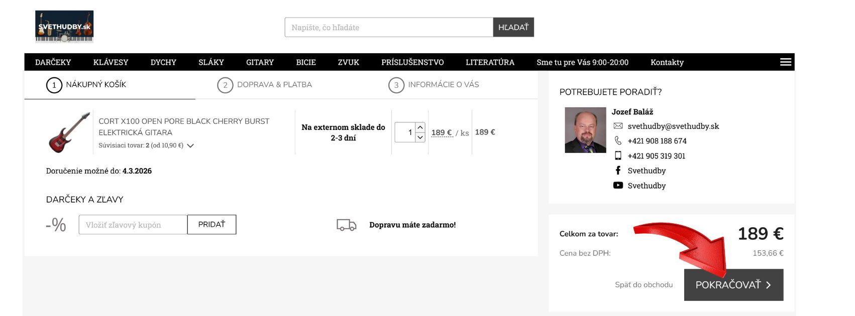 2. Prejdete do košíka.