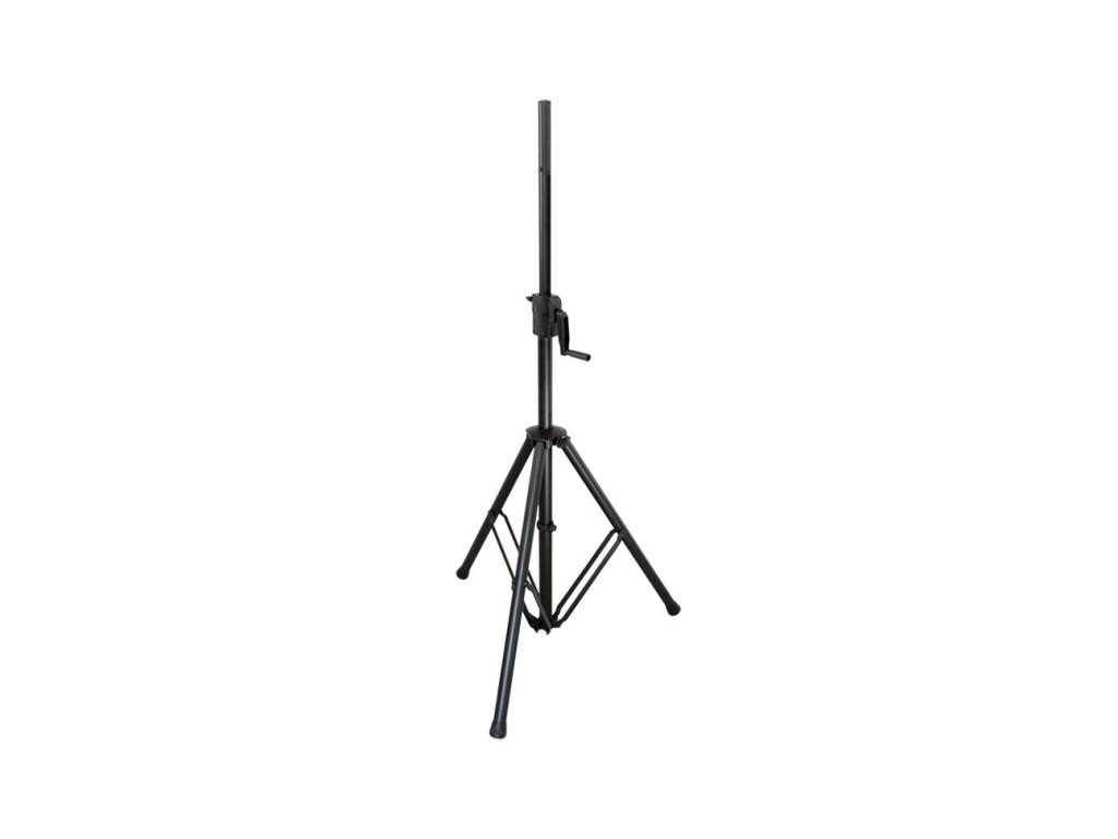 Veľmi kvalitný masívny kovový reproduktorový stojan s vysokou nosnosťou, vybavený praktickou kľukou. Stojan je vyrobený z oceľových trubiek s povrchovou úpravou čierna farba. Pomocou ručnej kľuky jednoducho a bezpečne nastavíte požadovanú výšku aj ťažších reproduktorov. Rukoväť je sklápateľná, pre jednoduchší transport.