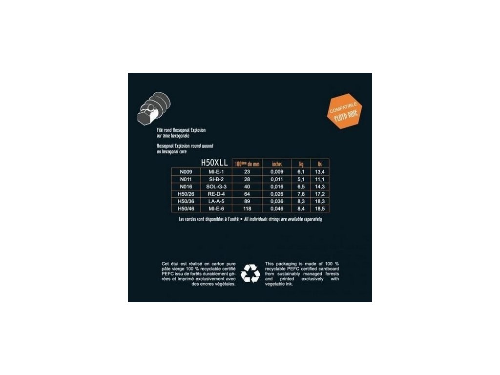 Poniklovaný ocelový drát na šestihranném jádru. Kulatý tón, vynikající odzev a maximální. Stabilní ladění, doporučuje se zejména pro použití s vibrato systémy. Hodí se zejména pro rock, pop, funk, ale také pro blues se speciálním rozsahem 11/49.Není možnost dodání jednotlivých strun !