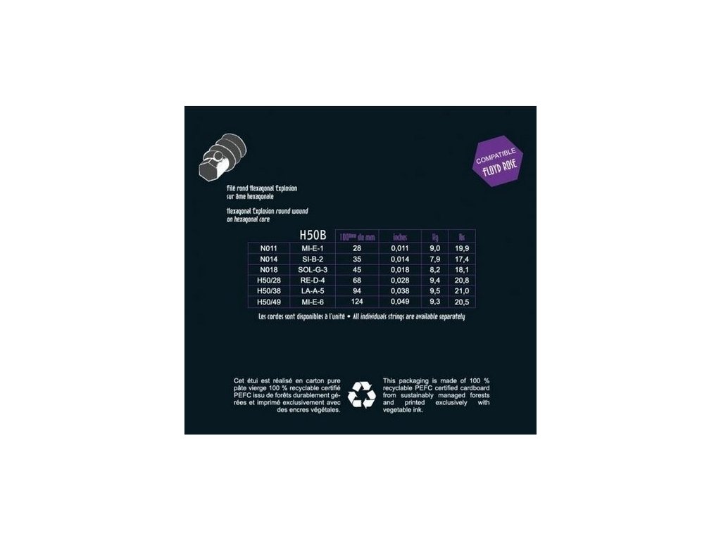 Poniklovaný ocelový drát na šestihranném jádru. Kulatý tón, vynikající odzev a maximální. Stabilní ladění, doporučuje se zejména pro použití s vibrato systémy. Hodí se zejména pro rock, pop, funk, ale také pro blues se speciálním rozsahem 11/49.Není možnost dodání jednotlivých strun !