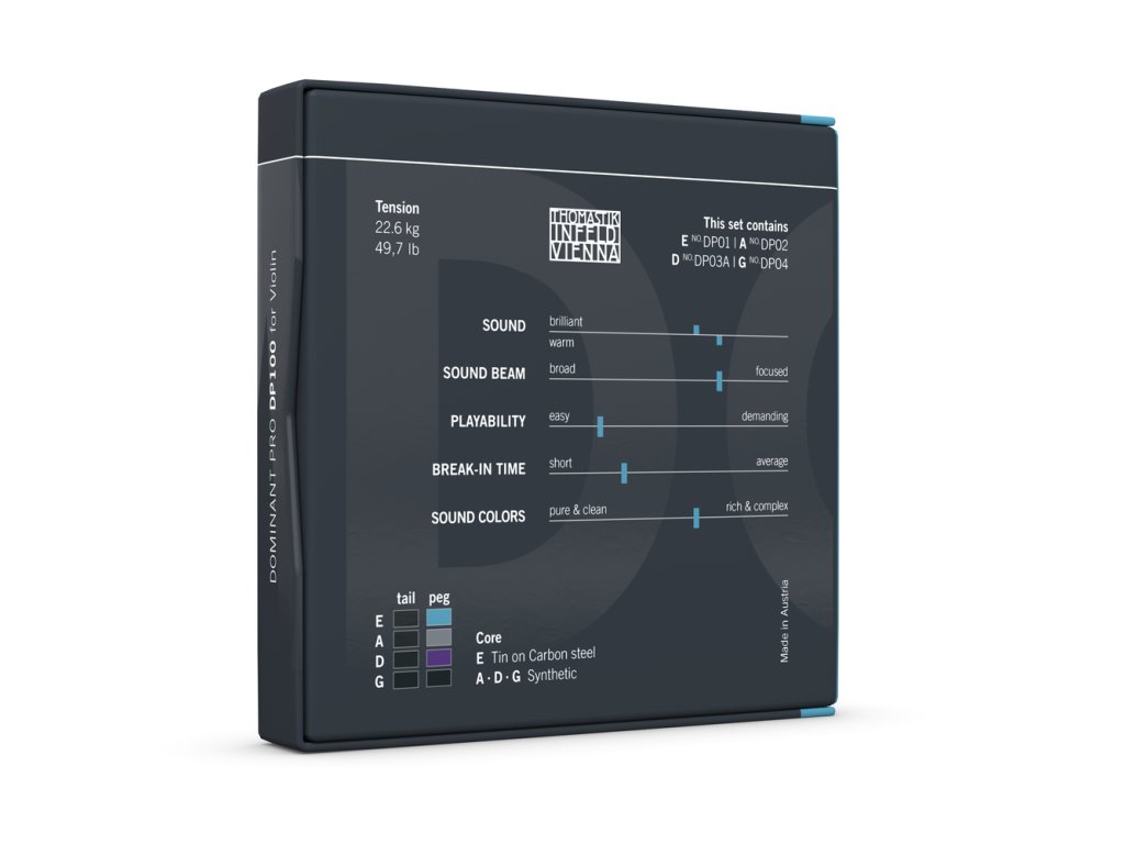 Od štúdia k svetovým pódiám. Dominant Pro od Thomastik-Infeld sú struny pre huslistov, ktorí prerástli klasický Dominant a hľadajú zvuk hodný veľkých scén. Inovatívne materiály a zdokonalená konštrukcia prinášajú výnimočnú dynamiku a bohaté harmonické farby. Profesionálna voľba.