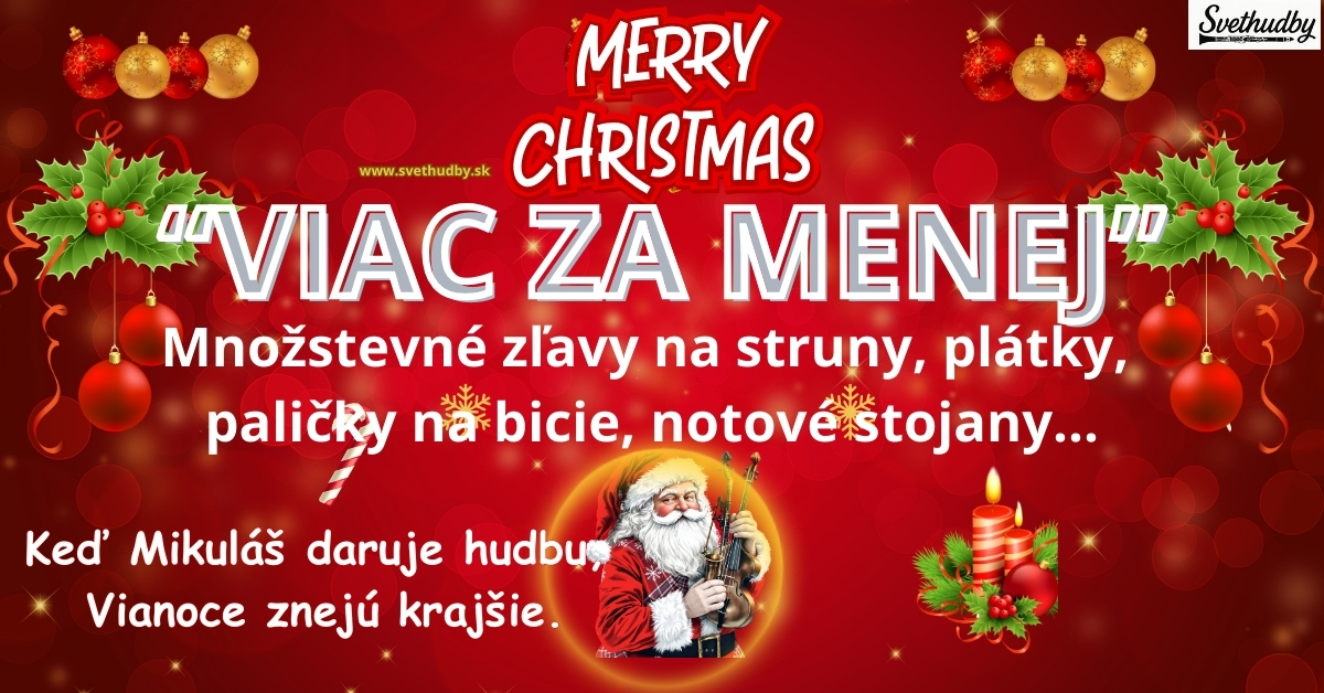 Vianoce sú časom radosti, lásky, hudby a práve teraz môžete využiť najväčšie zľavy ! Hľadáte dokonalý darček pre hudobníka alebo niekoho, kto miluje hudbu? V našej vianočnej ponuke nájdete starostlivo vybrané hudobné nástroje, príslušenstvo a doplnky, ktoré rozžiaria oči každého hudobného nadšenca.