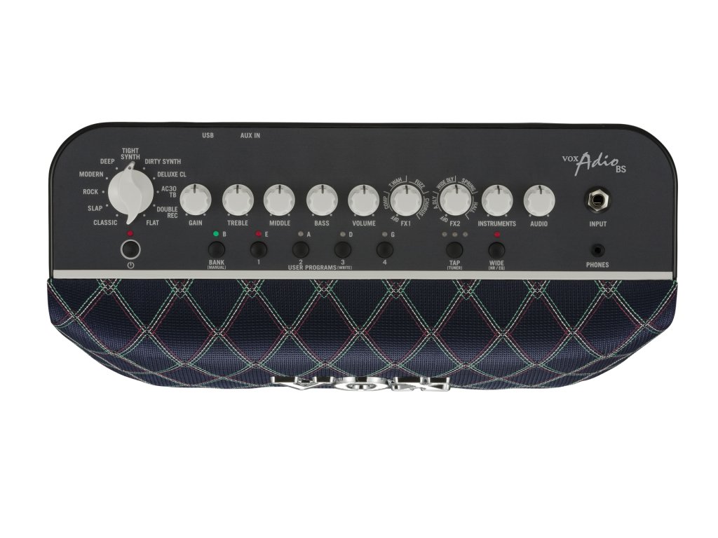 Adio predstavuje nový smer v oblasti modelingových zosilňovačov zn. VOX, ktoré sa vyznačujú špičkovými parametrami a súčasne tiež nezameniteľným vzhľadom vrátane charakteristické diamantovej mriežky. Zvučný tón je generovaný zosilňovačom s výkonom 50W a dvoma 3 "stereo reproduktormi, realistické modely zosilňovačov produkuje najmodernejšia modelingová technológia. Okrem toho je Adio dodávaný s programom Tone Room, s ktorým je možné jeho možnosti ďalej rozvíjať.